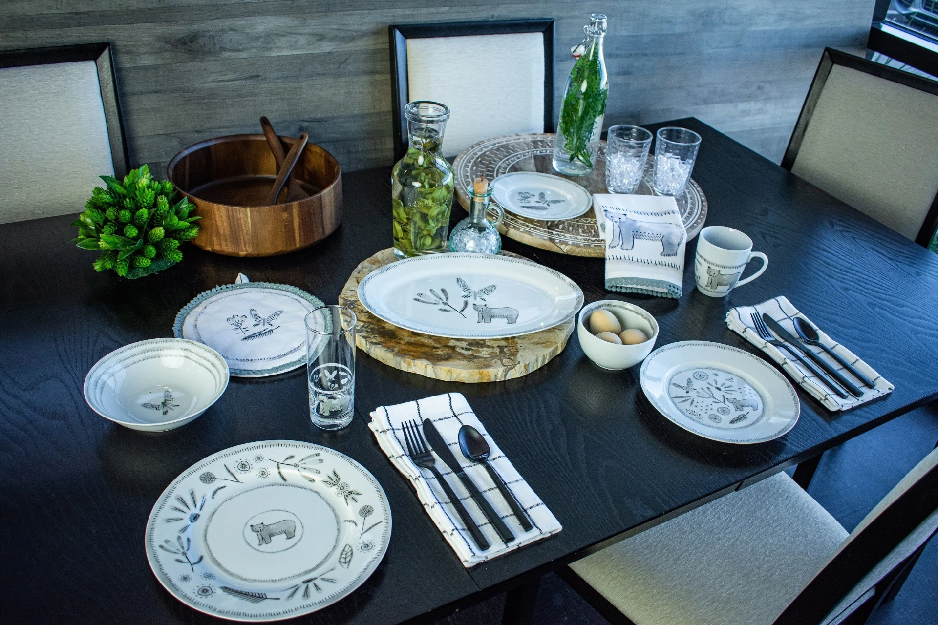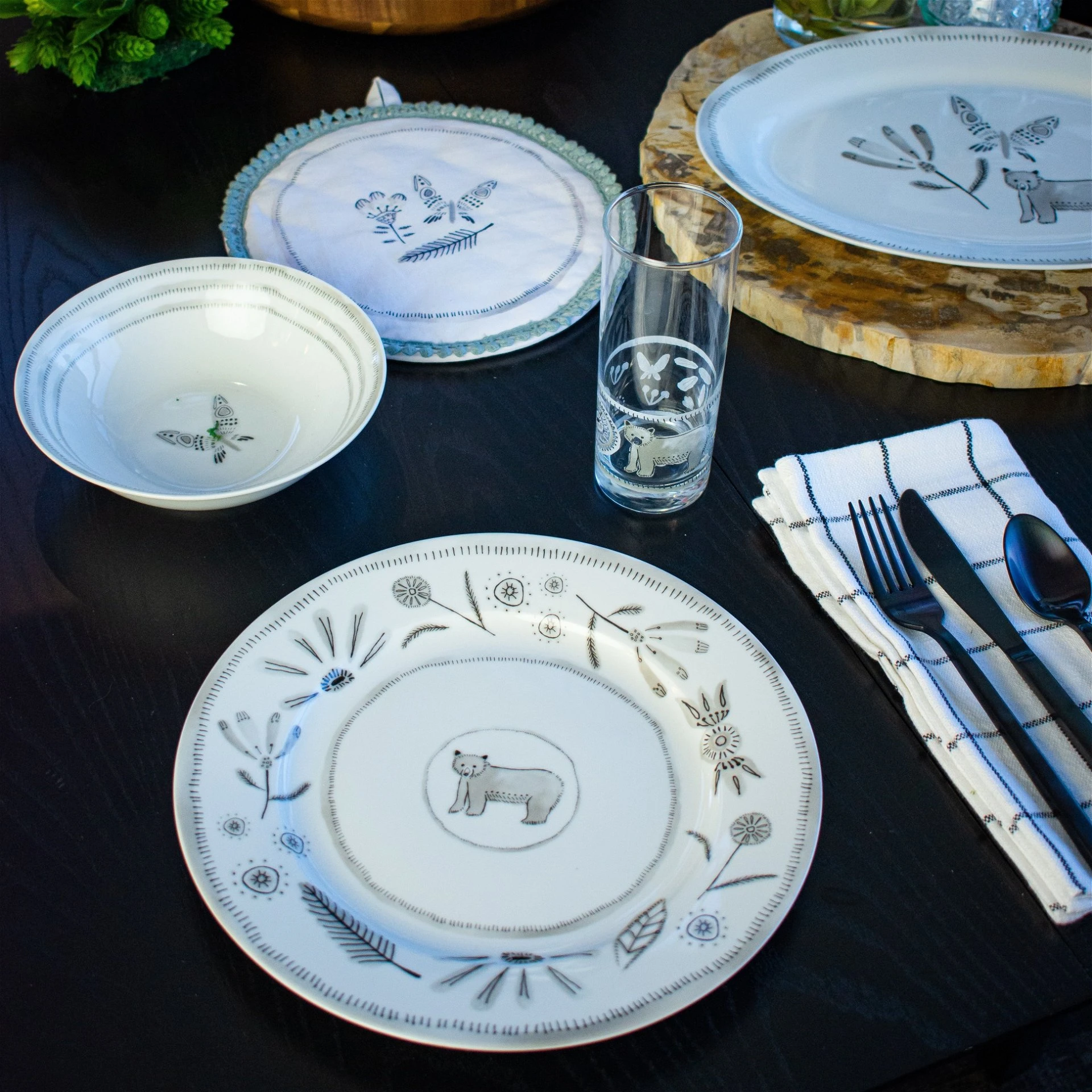 Do you love unique dinnerware but don’t want loud pieces that distract from your meal? Get the Bear With Me 7″ Salad Bowl from Everything Kitchens. This exclusive bowl features a simple gray and white color palette that complements any kitchen decor. To add a little whimsy to the design, each piece features a unique combination of line-drawn flowers, sprigs, a butterfly, and the titular bear. The bowl design features grey tick-marks along the rim and a butterfly at the center. The Everything Kitchens exclusive dinnerware will add a rustic thread to your dinnerware collection while the soft gray tones retain a clean design that will appeal to a wide array of guests. Don’t wait, get this exclusive piece of Everything Kitchens dinnerware and add it to your table today!