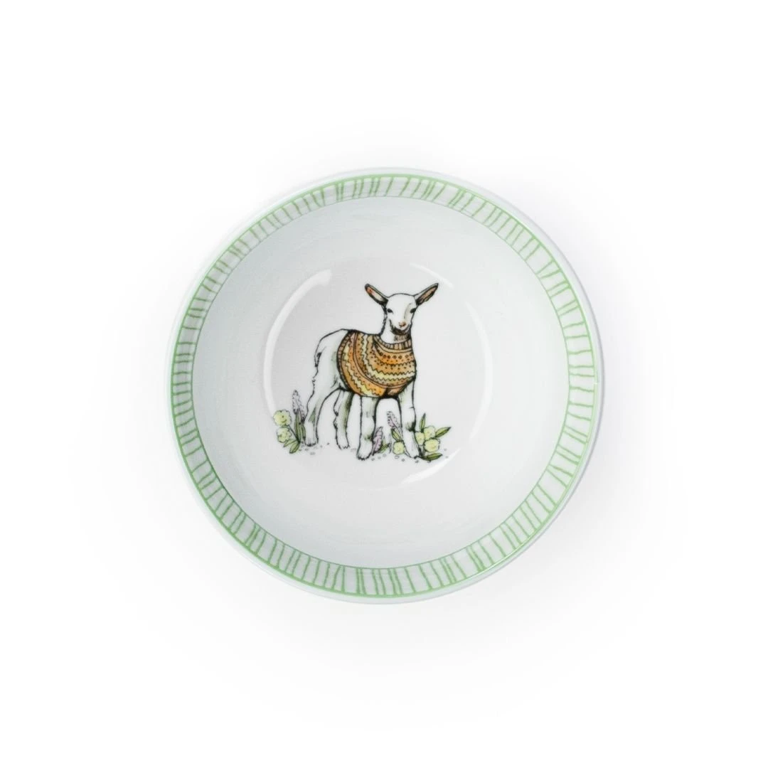 Add a playful charm to your table setting with the Exclusive Everything Kitchens “Caprine Caper” Baby Goat 4” Bowl! Known for their calm, sweet nature, this adorable white bowl features a hand-drawn illustration of a baby Swiss Saanen goat in a cozy knit sweater on the inside of the bowl. Embellished with a hand-drawn striped border along the inner rim, this piece is crafted from high-quality porcelain that’s microwave and dishwasher-safe for easy cleaning. Perfect for serving soups and smaller dishes or as a place to store jewelry and other trinkets, this charming bowl can be paired with other pieces from the Barnyard Baby Animals Collection or with your existing dinnerware for a whimsical, eye-catching display!