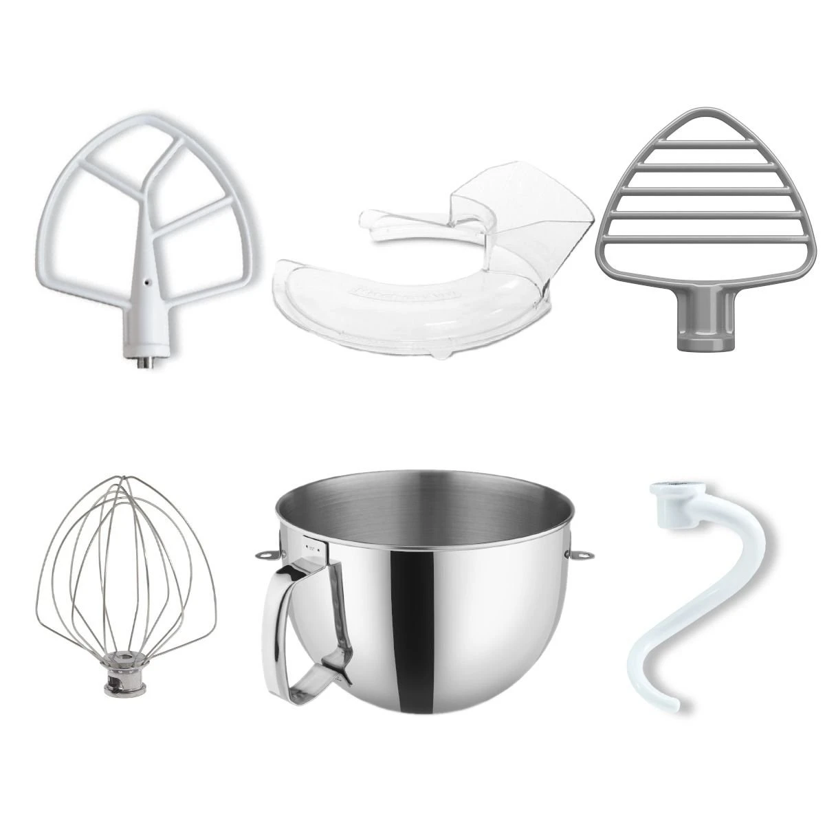 KitchenAid is the leading brand in all stand and bowl-lift mixers, and your Professional 600 or 6500 Series Bowl-Lift Mixer will need all the help it can get. Introducing the KitchenAid 6-Quart Stainless Steel Bowl + Coated Pastry Beater Accessory Pack, this bundle will make sure your 6-Quart Bowl-Lift Mixer can handle any job in the kitchen. Included in this set are KitchenAid 6-Quart Stainless Steel Bowl w/ Handle, the KitchenAid Coated Spiral Dough Hook, the KitchenAid Wire Whip, the KitchenAid Flat Beater, and the KitchenAid Coated Pastry Beater.