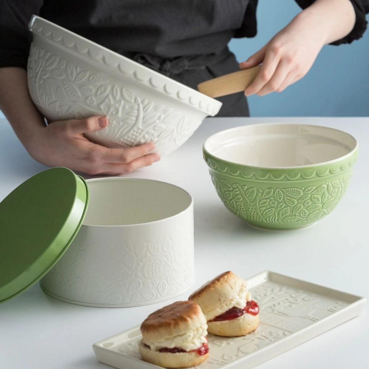 Whip up the perfect batch of cookies, pancakes, and more with the Mason Cash In The Forest Mixing Bowl. Made of durable, chip-resistant earthenware, this wide mixing bowl is perfect for children and adults alike. Designed as part of the In The Forest Collection, this cream-colored bowl features embossed foxes, trees, and leaves. Don’t want to spend ages cleaning your mixing bowl? This 4.25-Quart mixing bowl is dishwasher-safe and microwave-safe for quick heating-up of ingredients. No matter what you want to bake, this earthenware bowl is a must-have for your kitchen. Add some whimsy to your baking equipment with the Fox Embossed Mixing Bowl from the Mason Cash In The Forest Collection.
