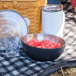 Ensure foods stay fresh as can be when serving up your family favorite recipes at potlucks, family picnics, or holiday meals with the Served 2.5 Quart Large Serving Bowl (Caviar)! Featuring a durable double-wall stainless steel construction with a copper lining and sleek matte finish, this serving bowl keeps foods piping hot or icy cold while serving – letting everyone enjoy foods at the optimal temperature while allowing for an attractive table setting. The BPA-free Tritan lid includes an airtight silicone seal to prevent leaks during transport, while the sturdy tab lets you effortlessly remove it without splashes or spills. Offering a generous 2.5 Quart capacity and finished in a sleek black Caviar finish, the Served 2.5 Quart Large Serving Bowl will make a welcomed addition to your dinner table during any event.