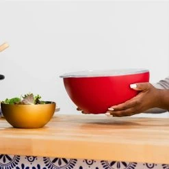 Ensure foods stay fresh as can be when serving up your family favorite recipes at potlucks, family picnics, or holiday meals with the Served 2.5 Quart Large Serving Bowl (Strawberry)! Featuring a durable double-wall stainless steel construction with a copper lining and sleek matte finish, this serving bowl keeps foods piping hot or icy cold while serving – letting everyone enjoy foods at the optimal temperature while allowing for an attractive table setting. The BPA-free Tritan lid includes an airtight silicone seal to prevent leaks during transport, while the sturdy tab lets you effortlessly remove it without splashes or spills. Offering a generous 2.5 Quart capacity and finished in a bright & bold Strawberry red finish, the Served 2.5 Quart Large Serving Bowl will make a welcomed addition to your dinner table during any event.
